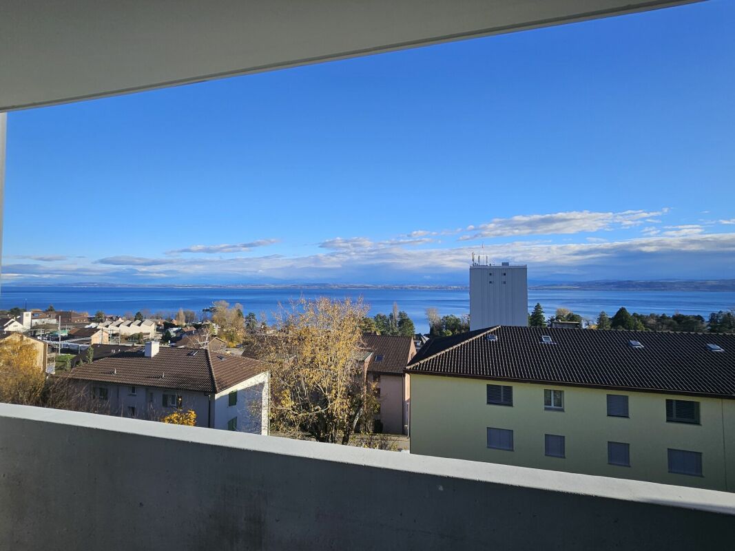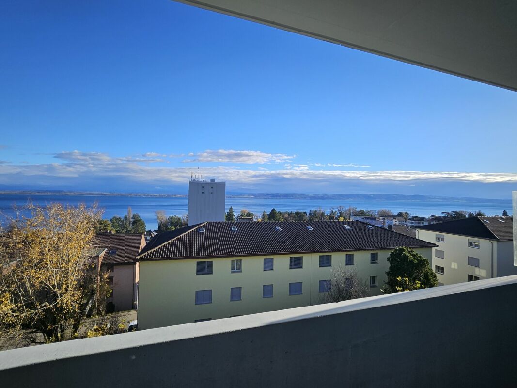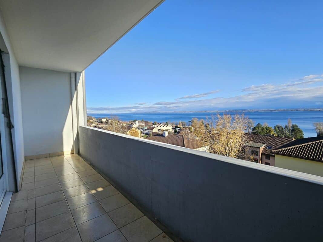 Appartement de 3.5 pièces comprenant une cuisine agencée neuve, un grand salon avec balcon permettant de profiter d’une vue magnifique sur le lac, deux chambres et de nombreux rangements.